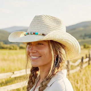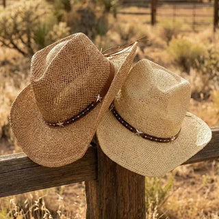 Beaded Straw Western Hat, Tan