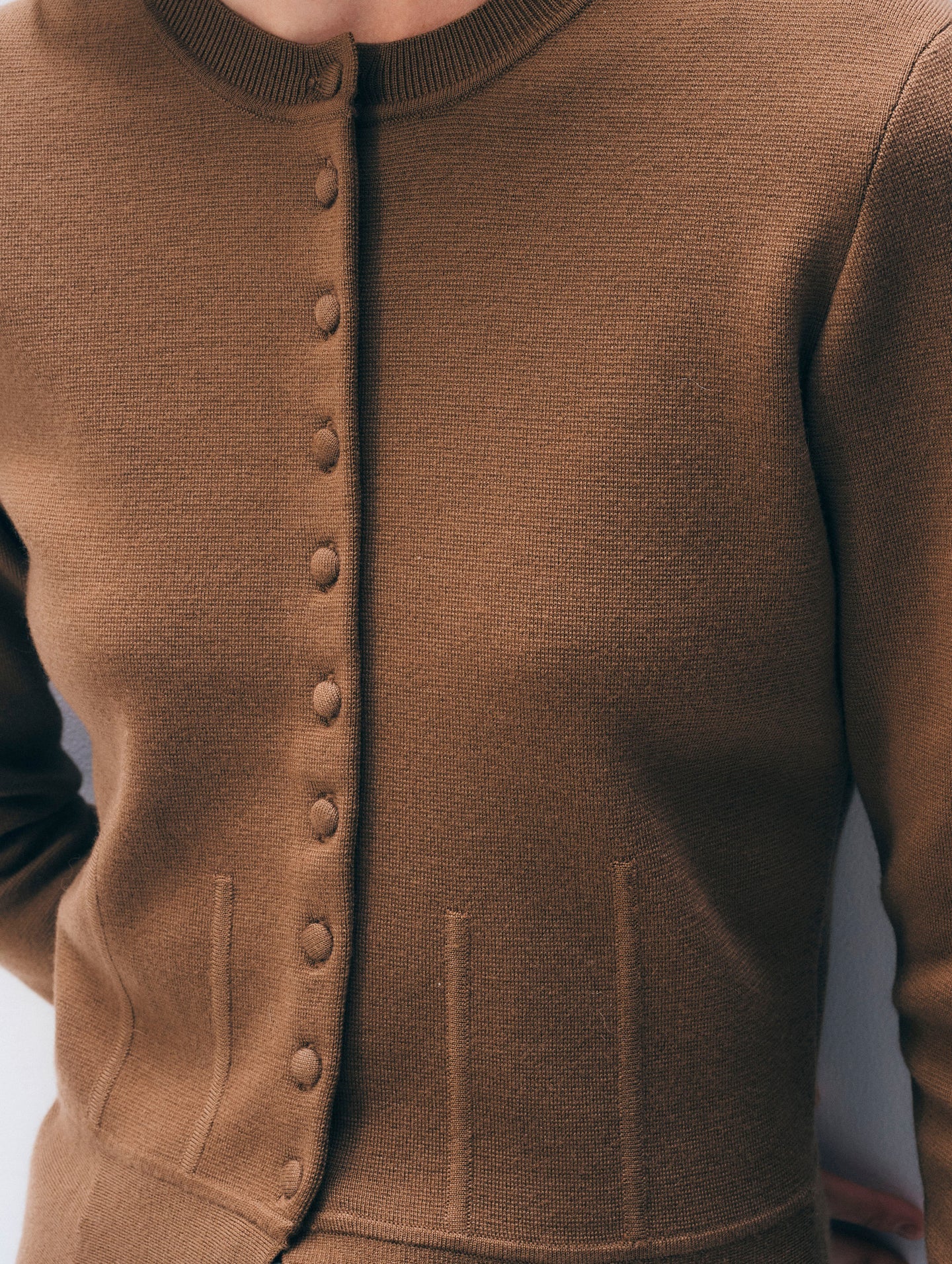 A cardigan designed to flatter. Spun from superfine merino in a Milano stitch, its slim, waisted silhouette features covered buttons and subtle peplum shaping for a feminine finish.