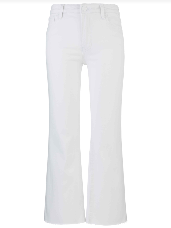 Refresh your wardrobe with these high-rise ankle flare jeans in stunning optic white. Designed with stretchy material, they deliver a perfect balance of comfort and contour. The clean optic white finish and modern ankle flare silhouette make them a must-have for effortlessly polished style.