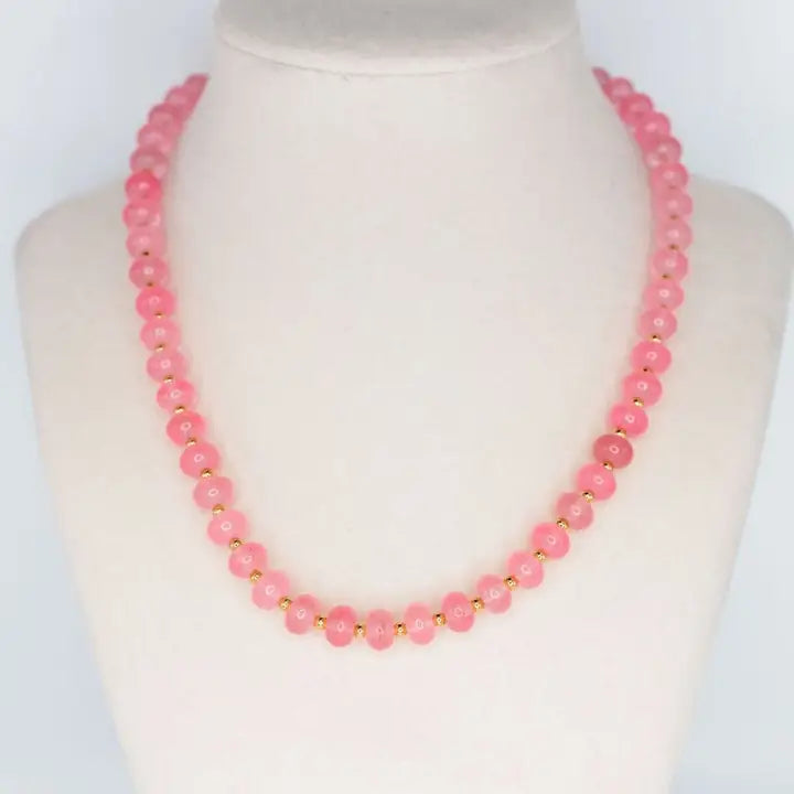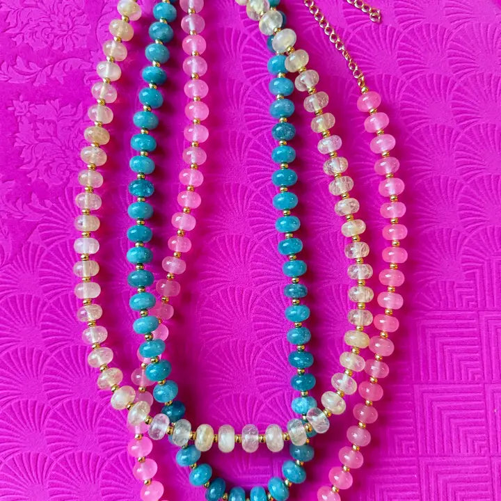 A strand of softly toned glass beads that adds a subtle pop of color while still feeling refined. Designed to layer beautifully or stand alone as your finishing touch.