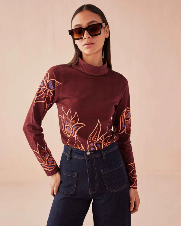 Elegant simplicity meets artful uniqueness in the Thea Top. With a mock-neck color and relaxed yet tailored silhouette, this piece is ready to spruce up your wardrobe, effortlessly.