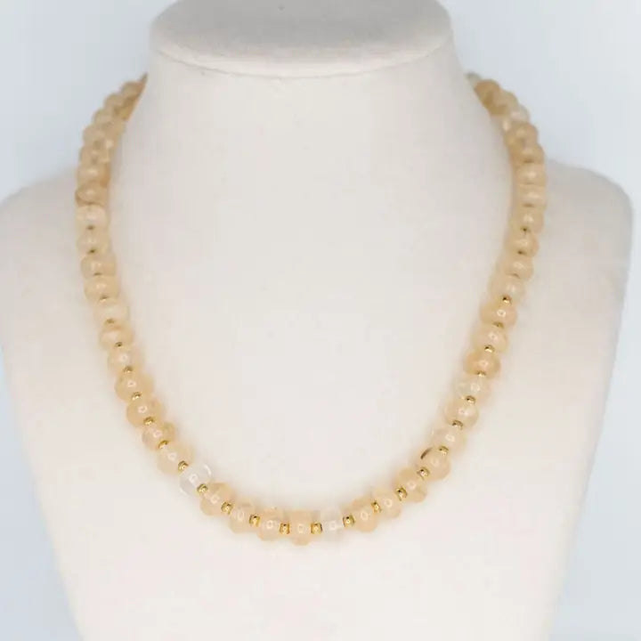 A strand of softly toned glass beads that adds a subtle pop of color while still feeling refined. Designed to layer beautifully or stand alone as your finishing touch.