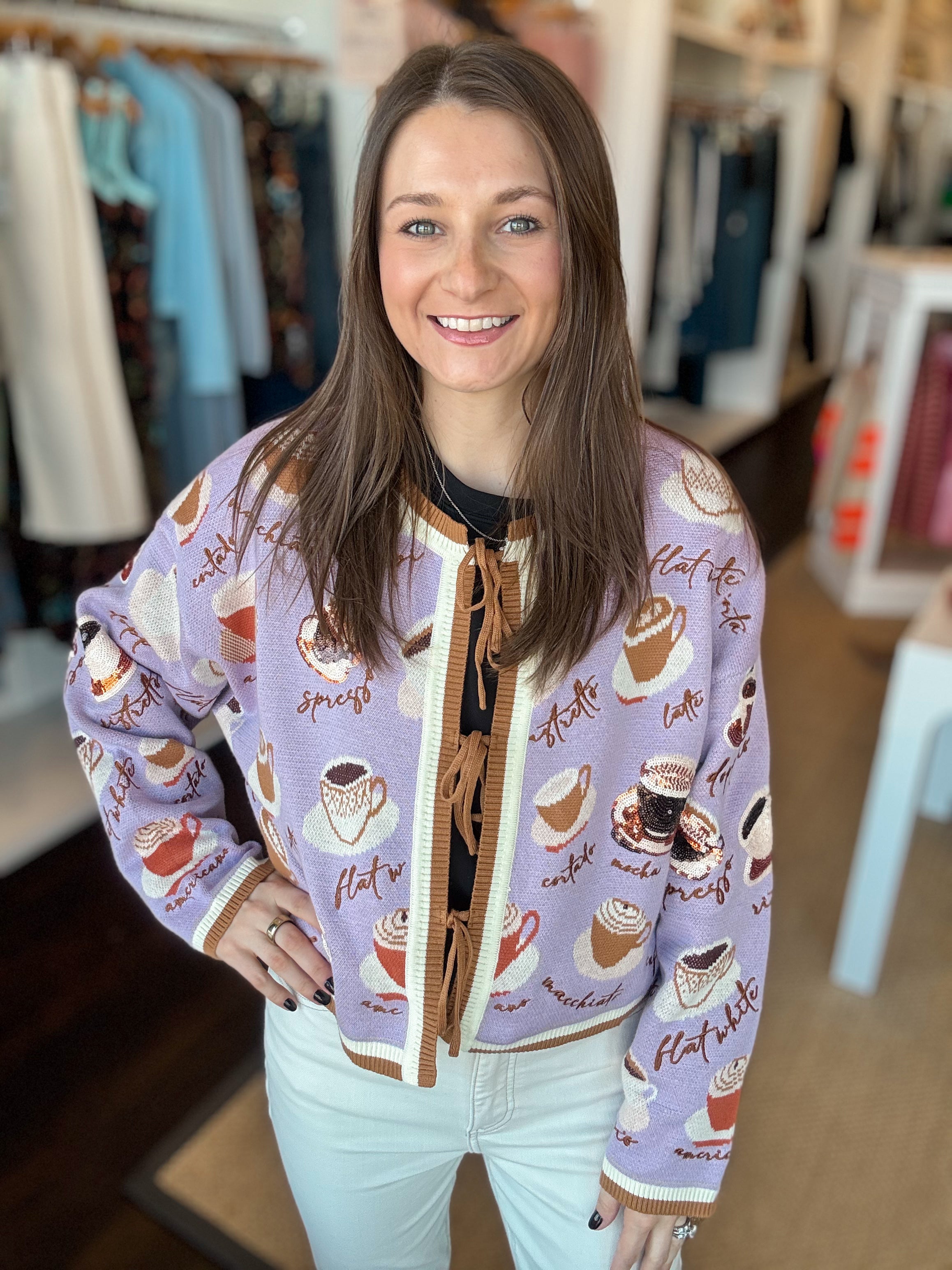 Coffee Tie Sweater, Lavender