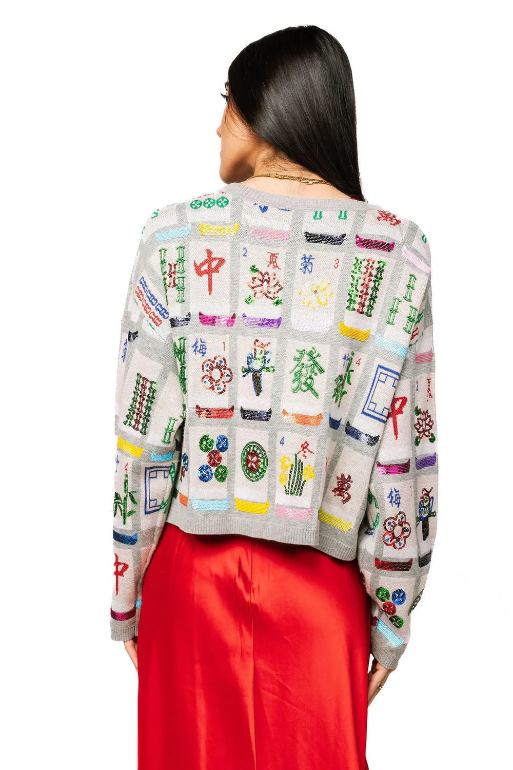 Elevate your casual wardrobe with this quirky Grey Mahjong Tile Tie Up Knit Sweater—where vintage game vibes meet modern style. The cozy knit fabric keeps you warm while the playful mahjong tile pattern adds instant personality to any outfit. Adjustable tie-up details at the sides let you customize the fit for a flattering silhouette. Perfect for game nights, coffee dates, or anyone who loves a conversation-starting piece that's equal parts fun and fashion-forward.